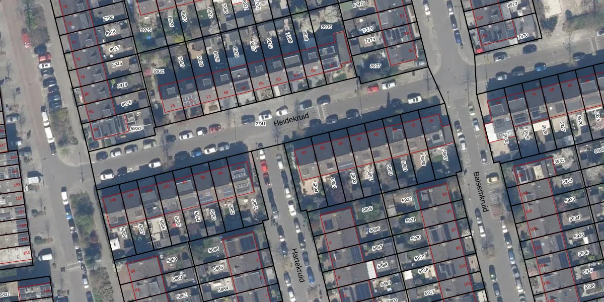Het perceel waarop Heidekruid 90 staat heeft een oppervlakte van 218 m². Dit is een middelgroot perceel. De perceeloppervlakte wordt geregistreerd door het Kadaster. Gedetailleerde informatie over de maten van dit perceel kunt u vinden in het rapport Kadastrale kaart met maatvoering van Heidekruid 90.