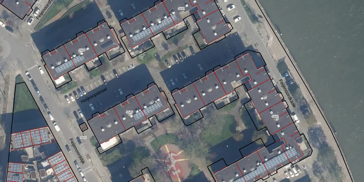 Het adres ligt op het perceel RTD05-Q-5542, dat zich in de kadastrale gemeente Rotterdam bevindt. De oppervlakte van het perceel is 2469 m². Dat is groter dan gemiddeld in Rotterdam, waar de gemiddelde perceeloppervlakte op 1401,79 m² ligt. Het kleinste perceel in de kadastrale gemeente is 0 m² groot. De grootste perceeloppervlakte is 36,8 ha. Op het perceel liggen in totaal 70 adressen. In de Basisregistratie Kadaster (BRK) werden de grenzen van het perceel geregistreerd op 12-08-2003.