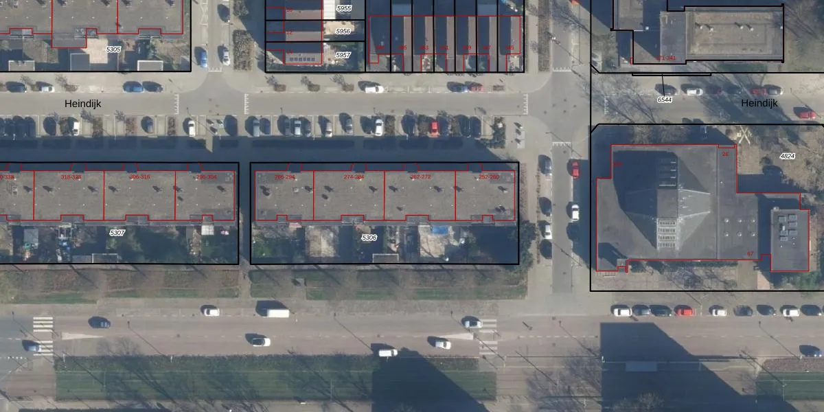 Heindijk 266 is gelegen op kadastraal perceel ISM01B5306. Deze kadastrale aanduiding is uniek en wordt gebruikt door het Kadaster om eigendomsrechten en andere zakelijke rechten vast te leggen. Het perceel maakt onderdeel uit van de kadastrale gemeente IJsselmonde.