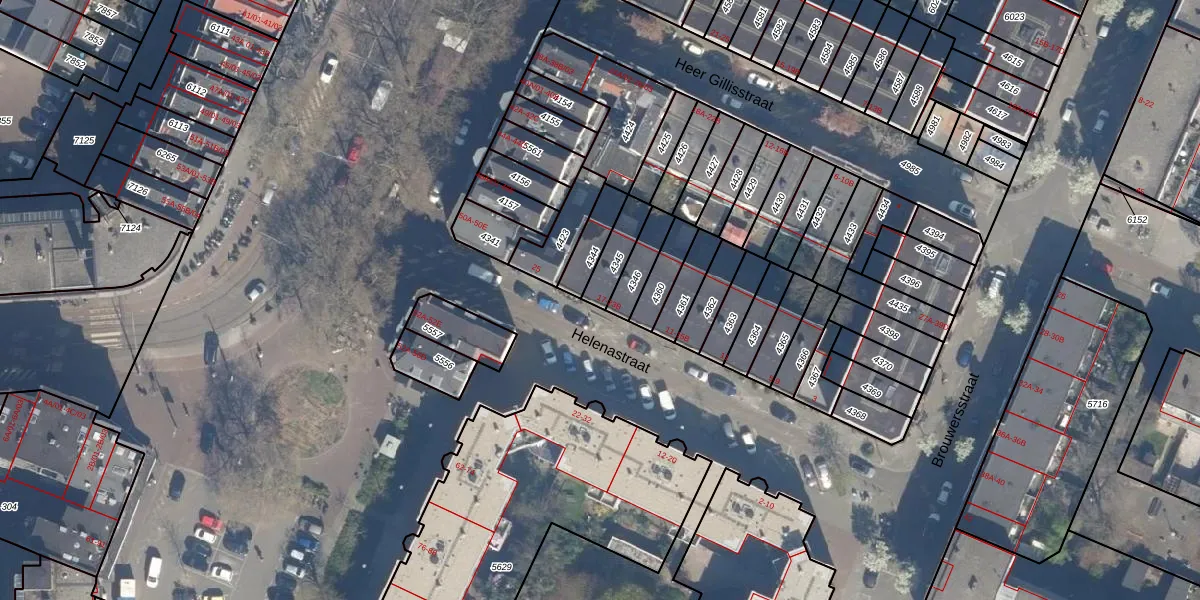 Helenastraat 21-A is gelegen op kadastraal perceel KLG00G4345. Deze kadastrale aanduiding is uniek en wordt gebruikt door het Kadaster om eigendomsrechten en andere zakelijke rechten vast te leggen. Het perceel maakt onderdeel uit van de kadastrale gemeente Kralingen.