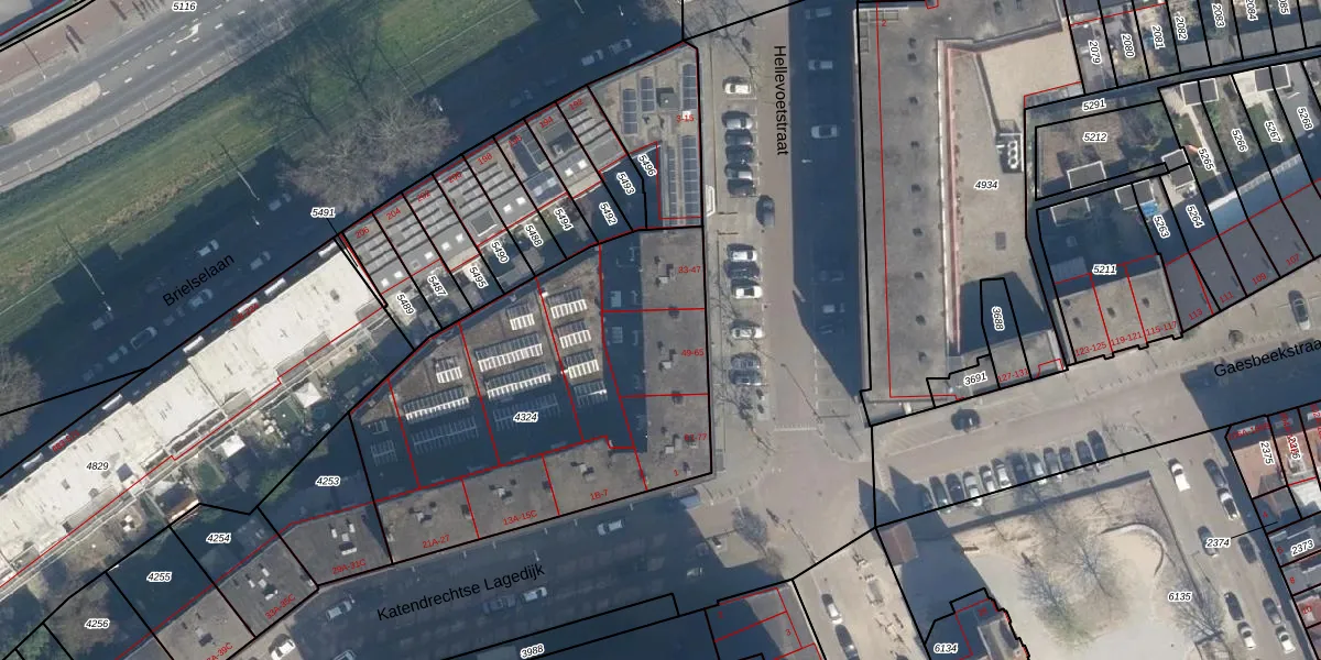 Hellevoetstraat 53 is gelegen op kadastraal perceel CLS00E4324. Deze kadastrale aanduiding is uniek en wordt gebruikt door het Kadaster om eigendomsrechten en andere zakelijke rechten vast te leggen. Het perceel maakt onderdeel uit van de kadastrale gemeente Charlois.