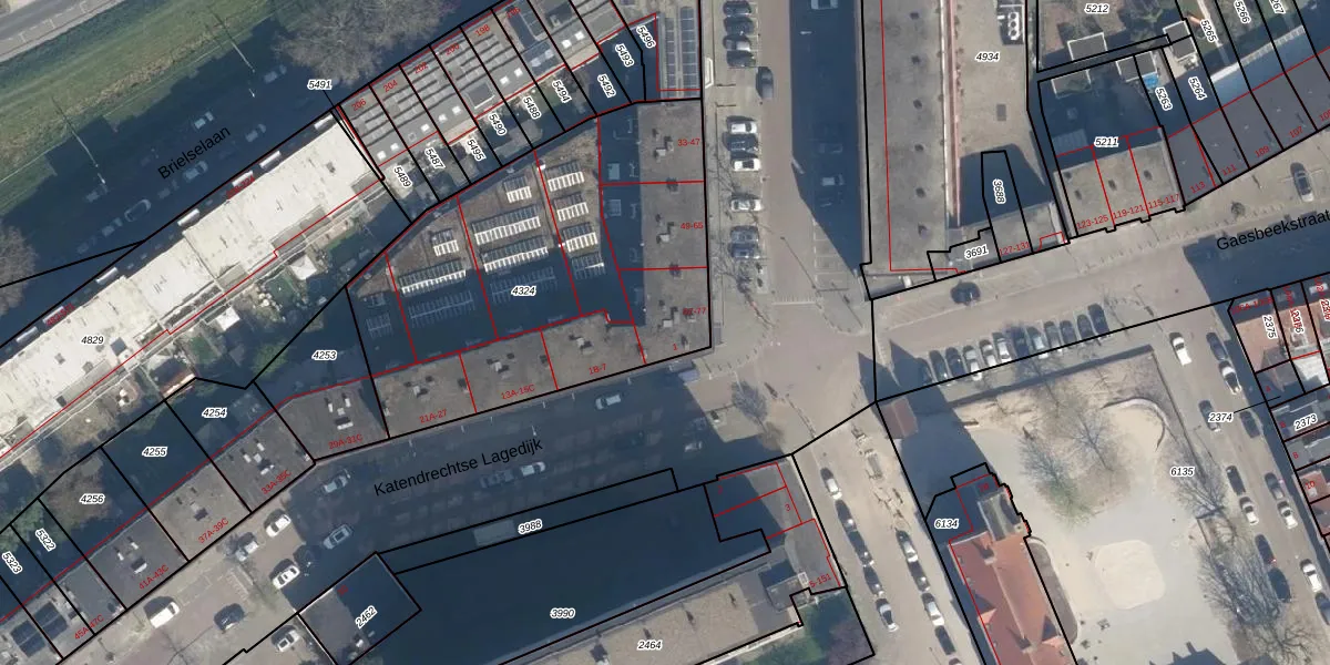 Het adres is gelegen op perceel 4324 in de sectie E en de kadastrale gemeente Charlois. De kadastrale aanduiding is aldus CLS00-E-4324. Het perceel is met 1837 m² relatief groot. Het gemiddelde ligt in de kadastrale gemeente Charlois op 1146,98 m². Het grootste perceel in de kadastrale gemeente is 1,09 km². Het kleinste perceel heeft een oppervlakte van 0 m². Op het perceel liggen in totaal 46 adressen. De huidige grenzen van het perceel zijn digitaal in de Basisregistratie Kadaster (BRK) geregistreerd op 19-09-2019.