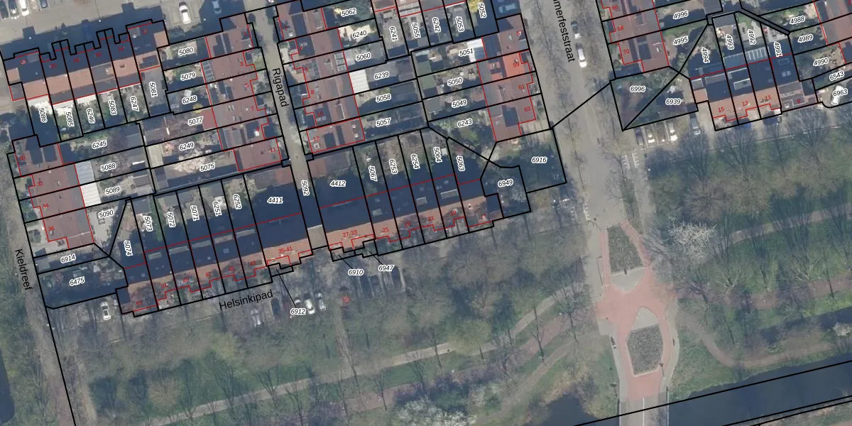 Gebruik de zoekbalk of klik op een perceel voor informatie over de adressen binnen dit perceel.