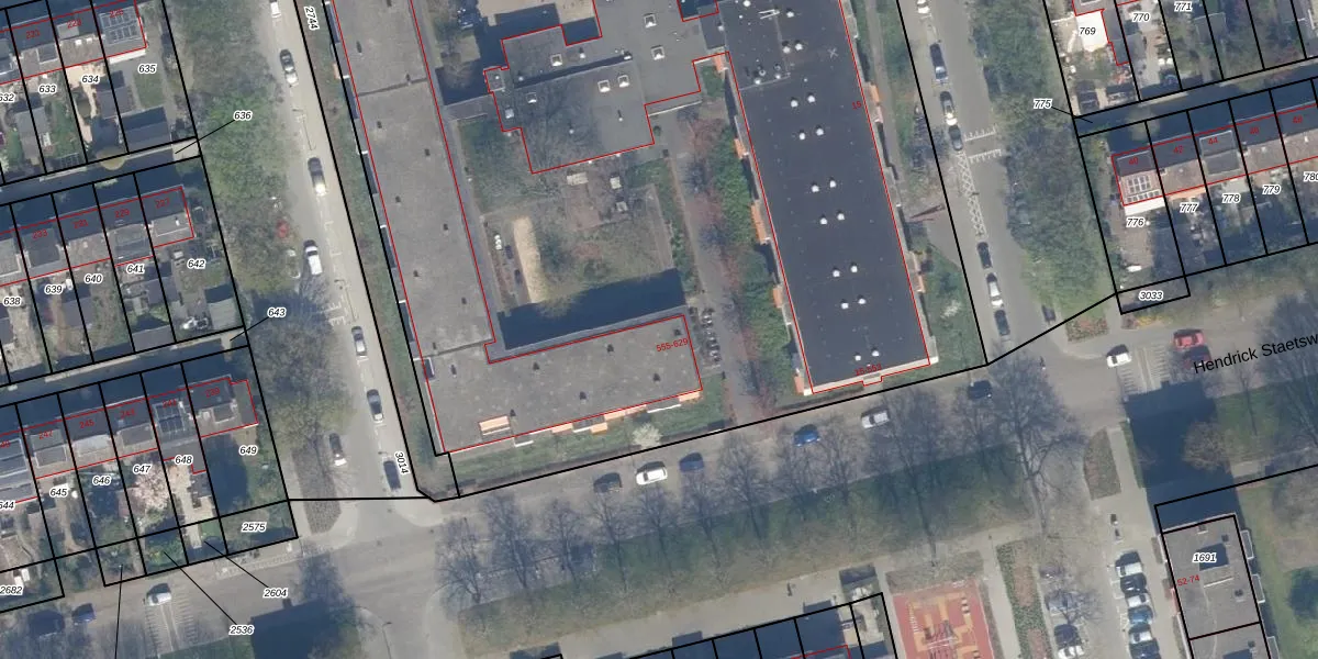 Hendrick Staetsweg 555 is gelegen op kadastraal perceel KLG00K1197. Deze kadastrale aanduiding is uniek en wordt gebruikt door het Kadaster om eigendomsrechten en andere zakelijke rechten vast te leggen. Het perceel maakt onderdeel uit van de kadastrale gemeente Kralingen.