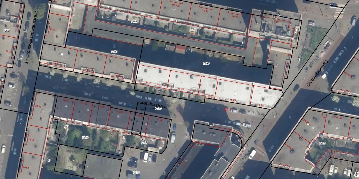Hendrikstraat 47 is gelegen op kadastraal perceel RTD07R7299. Deze kadastrale aanduiding is uniek en wordt gebruikt door het Kadaster om eigendomsrechten en andere zakelijke rechten vast te leggen. Het perceel maakt onderdeel uit van de kadastrale gemeente Rotterdam.