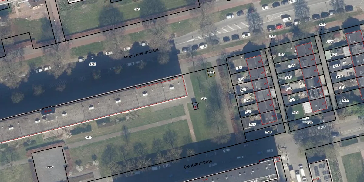 Het perceel waarop Henri Eversstraat 38 staat heeft een oppervlakte van 7283 m². Dit is een zeer groot perceel. De perceeloppervlakte wordt geregistreerd door het Kadaster. Gedetailleerde informatie over de maten van dit perceel kunt u vinden in het rapport Kadastrale kaart met maatvoering van Henri Eversstraat 38.