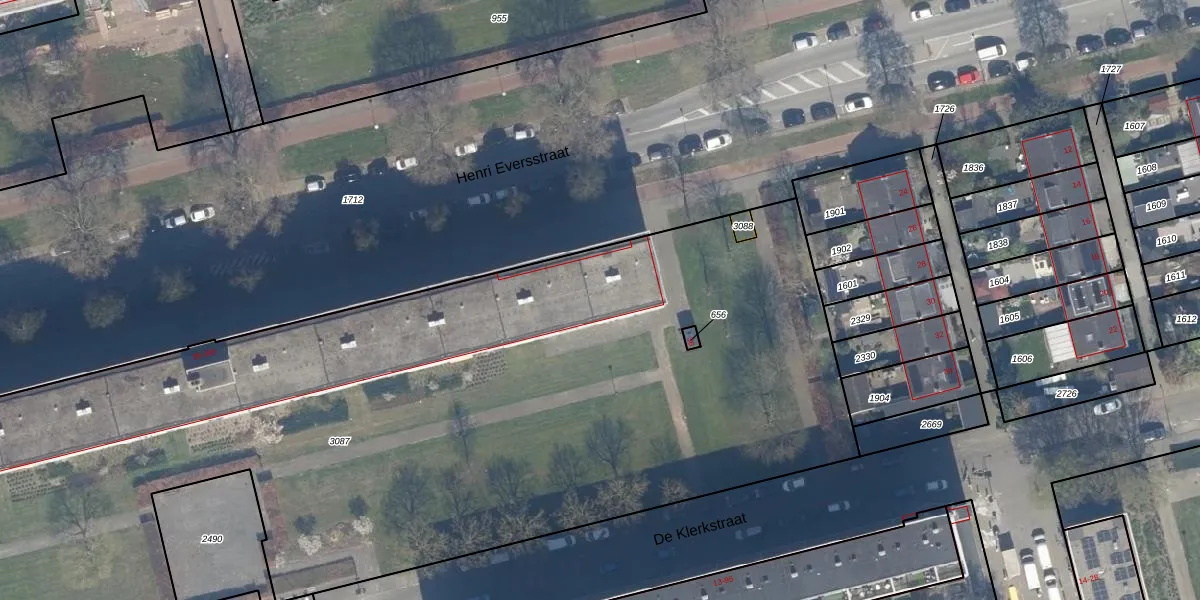 Het perceel waarop Henri Eversstraat 42 staat heeft een oppervlakte van 7283 m². Dit is een zeer groot perceel. De perceeloppervlakte wordt geregistreerd door het Kadaster. Gedetailleerde informatie over de maten van dit perceel kunt u vinden in het rapport Kadastrale kaart met maatvoering van Henri Eversstraat 42.