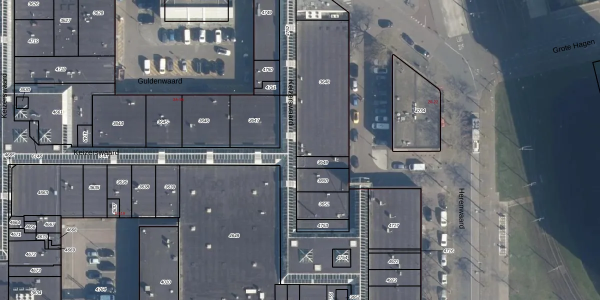Herenwaard 24 is gelegen op kadastraal perceel ISM01D3648. Deze kadastrale aanduiding is uniek en wordt gebruikt door het Kadaster om eigendomsrechten en andere zakelijke rechten vast te leggen. Het perceel maakt onderdeel uit van de kadastrale gemeente IJsselmonde.