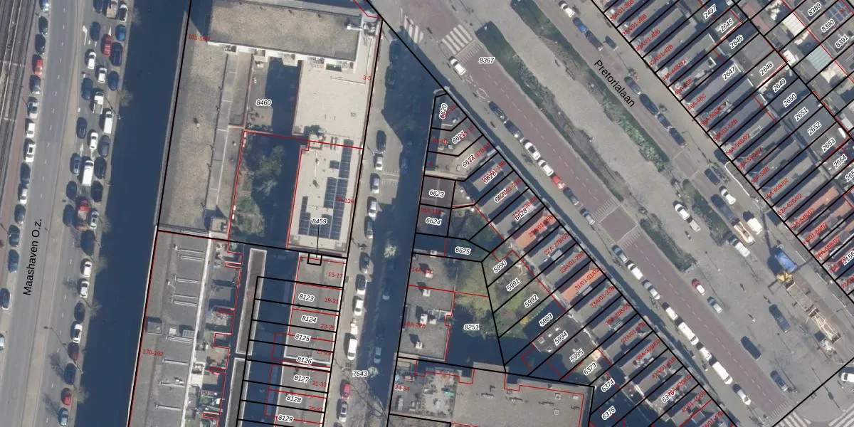 Het adres is gelegen op perceel 6624 in de sectie D en de kadastrale gemeente Charlois. De kadastrale aanduiding is aldus CLS00-D-6624. Het perceel is 49 m² groot. Dat is kleiner dan de gemiddelde perceeloppervlakte in Charlois, dat op 1147,24 m² ligt. Het kleinste perceel in de kadastrale gemeente is 0 m² groot. De grootste perceeloppervlakte is 1,09 km². Op het perceel zijn 3 adressen aanwezig. De huidige grenzen van het perceel zijn digitaal in de Basisregistratie Kadaster (BRK) geregistreerd op 11-04-2003.