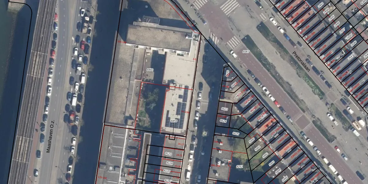 Het adres is gelegen op perceel 8460 in de sectie D en de kadastrale gemeente Charlois. De kadastrale aanduiding is aldus CLS00-D-8460. De gemiddelde perceeloppervlakte in de kadastrale gemeente Charlois is 1147,24 m². Dit perceel is met zijn 3215 m² dus groter dan gemiddeld. Het grootste perceel in de kadastrale gemeente is 1,09 km². Het kleinste perceel heeft een oppervlakte van 0 m². Er zijn 105 adressen aanwezig op het perceel. De huidige grenzen van het perceel zijn digitaal in de Basisregistratie Kadaster (BRK) geregistreerd op 26-05-2003.