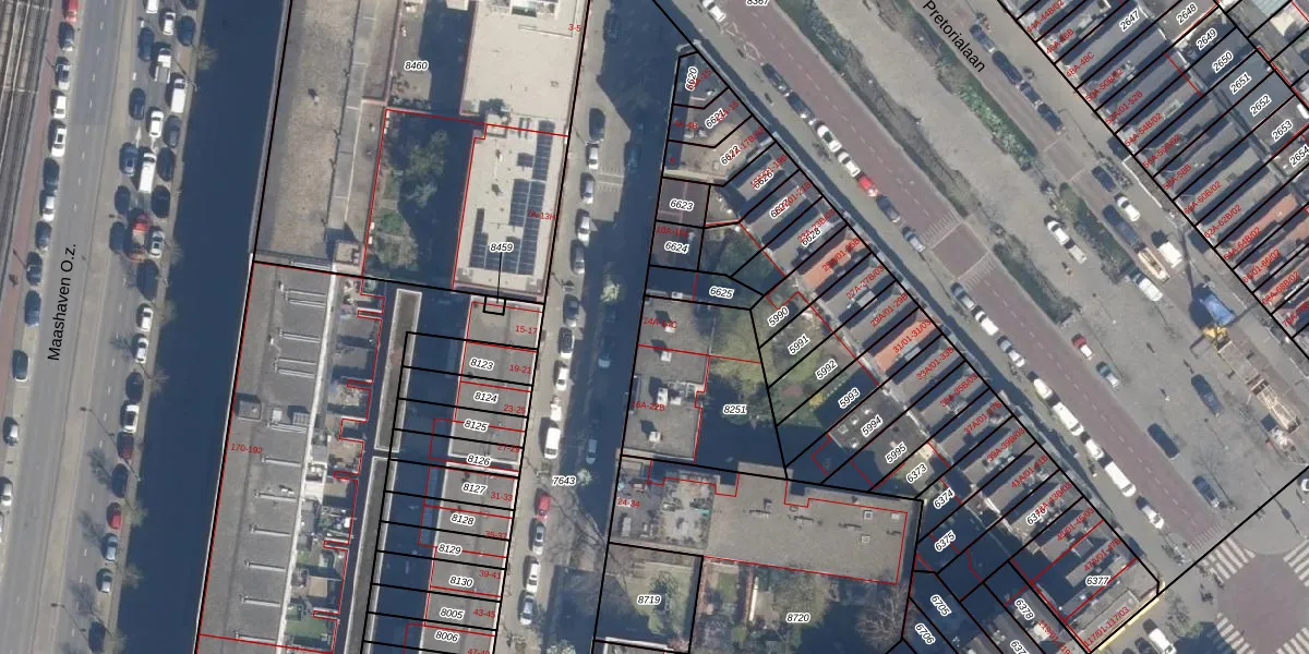 Het adres is gelegen op perceel 8251 in de sectie D en de kadastrale gemeente Charlois. De kadastrale aanduiding is aldus CLS00-D-8251. Het perceel is 518 m² groot. Dat is kleiner dan de gemiddelde perceeloppervlakte in Charlois, dat op 1147,69 m² ligt. Het kleinste perceel in de kadastrale gemeente is 0 m² groot. De grootste perceeloppervlakte is 1,09 km². Op het perceel liggen in totaal 11 adressen. In de Basisregistratie Kadaster (BRK) werden de grenzen van het perceel geregistreerd op 11-04-2003.
