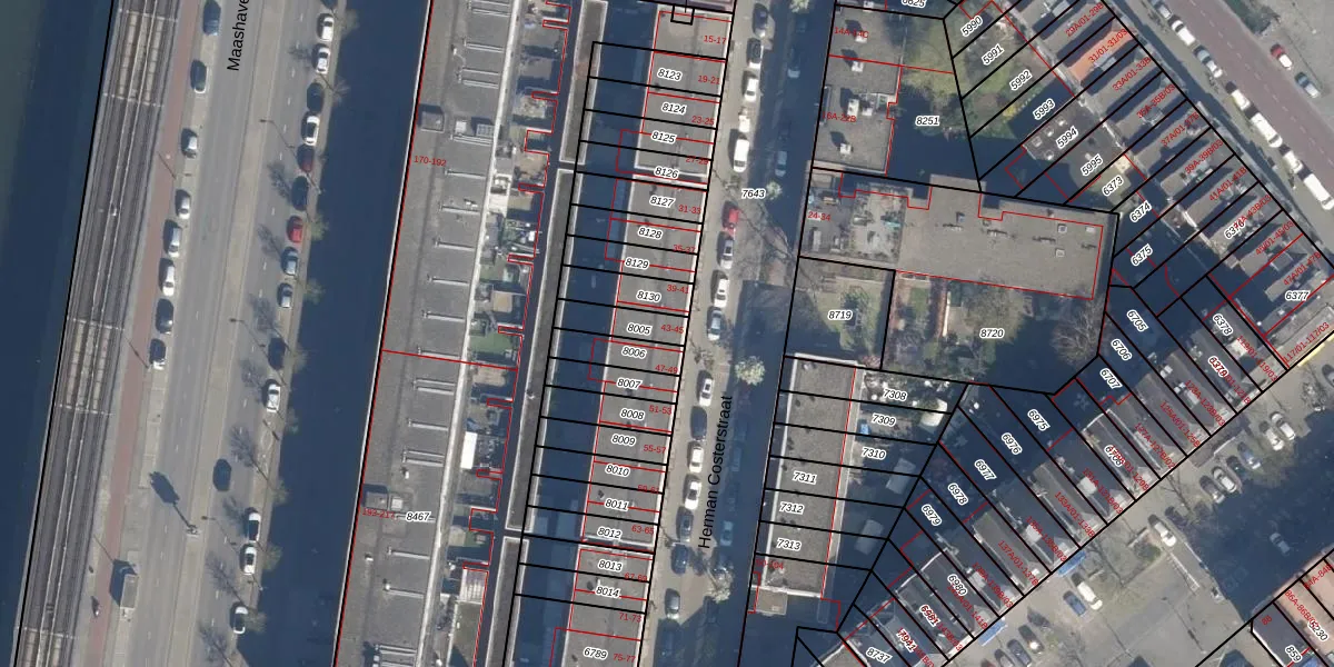Herman Costerstraat 45 is gelegen op kadastraal perceel CLS00D8005. Deze kadastrale aanduiding is uniek en wordt gebruikt door het Kadaster om eigendomsrechten en andere zakelijke rechten vast te leggen. Het perceel maakt onderdeel uit van de kadastrale gemeente Charlois.