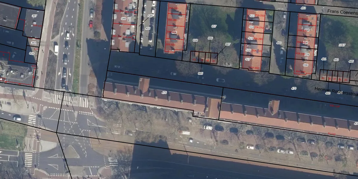 Het adres is gelegen op perceel 475 in de sectie AE en de kadastrale gemeente Rotterdam. De kadastrale aanduiding is aldus RTD04-AE-475. Het perceel is kleiner dan gemiddeld in Rotterdam. Het perceel is 1044 m² groot, terwijl het gemiddelde ligt op 1239,97 m². Het grootste perceel in de kadastrale gemeente is 17,3 ha. Het kleinste perceel heeft een oppervlakte van 0 m². Er zijn 52 adressen aanwezig op het perceel. De huidige grenzen van het perceel zijn digitaal in de Basisregistratie Kadaster (BRK) geregistreerd op 20-01-2003.