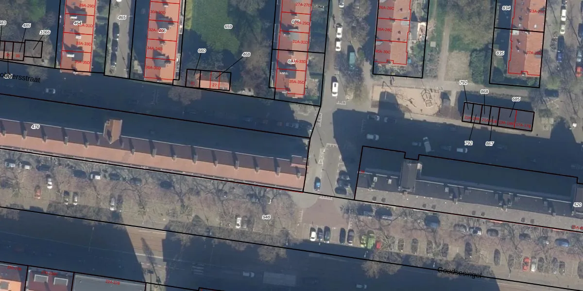 Het adres is gelegen op perceel 476 in de sectie AE en de kadastrale gemeente Rotterdam. De kadastrale aanduiding is aldus RTD04-AE-476. De gemiddelde perceeloppervlakte in de kadastrale gemeente Rotterdam is 1239,97 m². Dit perceel is met zijn 3162 m² dus groter dan gemiddeld. De grootste perceeloppervlakte in de kadastrale gemeente is 17,3 ha. De kleinste oppervlakte bedraagt 0 m². Op het perceel liggen in totaal 134 adressen. De huidige grenzen van het perceel zijn digitaal in de Basisregistratie Kadaster (BRK) geregistreerd op 20-01-2003.