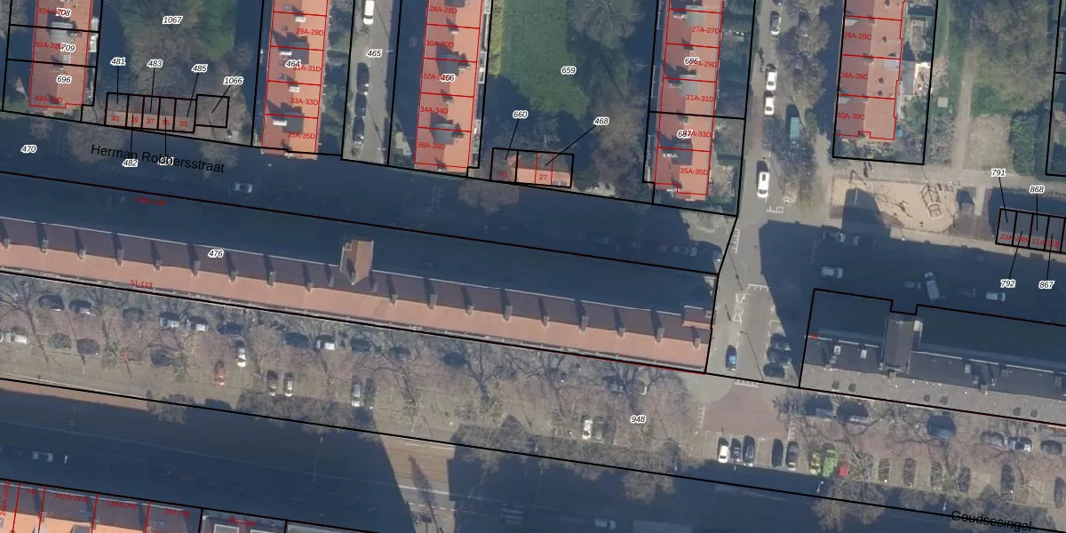 Herman Robbersstraat 60-D is gelegen op kadastraal perceel RTD04AE476. Deze kadastrale aanduiding is uniek en wordt gebruikt door het Kadaster om eigendomsrechten en andere zakelijke rechten vast te leggen. Het perceel maakt onderdeel uit van de kadastrale gemeente Rotterdam.
