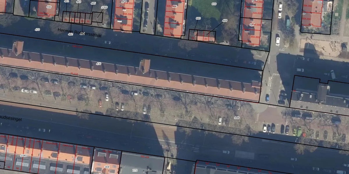 Herman Robbersstraat 64-A is gelegen op kadastraal perceel RTD04AE476. Deze kadastrale aanduiding is uniek en wordt gebruikt door het Kadaster om eigendomsrechten en andere zakelijke rechten vast te leggen. Het perceel maakt onderdeel uit van de kadastrale gemeente Rotterdam.
