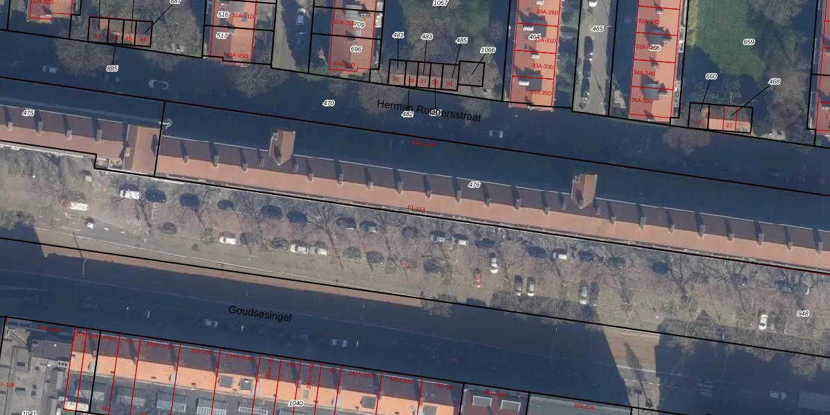 Herman Robbersstraat 78-A is gelegen op kadastraal perceel RTD04AE476. Deze kadastrale aanduiding is uniek en wordt gebruikt door het Kadaster om eigendomsrechten en andere zakelijke rechten vast te leggen. Het perceel maakt onderdeel uit van de kadastrale gemeente Rotterdam.
