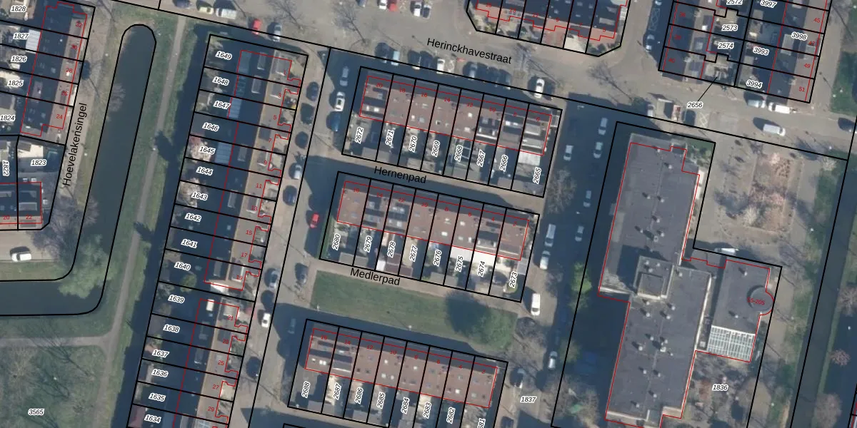 Gebruik de zoekbalk of klik op een perceel voor informatie over de adressen binnen dit perceel.