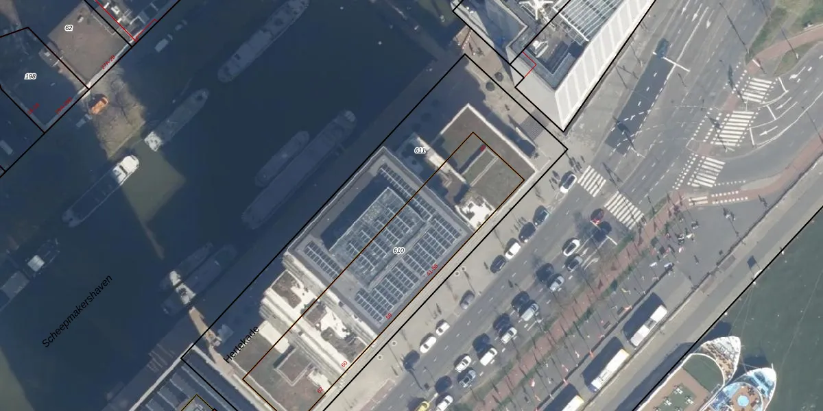 Hertekade 90 is gelegen op kadastraal perceel RTD04AH610. Deze kadastrale aanduiding is uniek en wordt gebruikt door het Kadaster om eigendomsrechten en andere zakelijke rechten vast te leggen. Het perceel maakt onderdeel uit van de kadastrale gemeente Rotterdam.