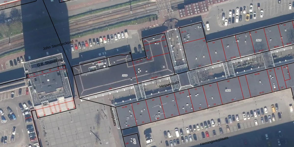 Het perceel waarop Hesseplaats 197 staat heeft een oppervlakte van 1282 m². Dit is een zeer groot perceel. De perceeloppervlakte wordt geregistreerd door het Kadaster. Gedetailleerde informatie over de maten van dit perceel kunt u vinden in het rapport Kadastrale kaart met maatvoering van Hesseplaats 197.