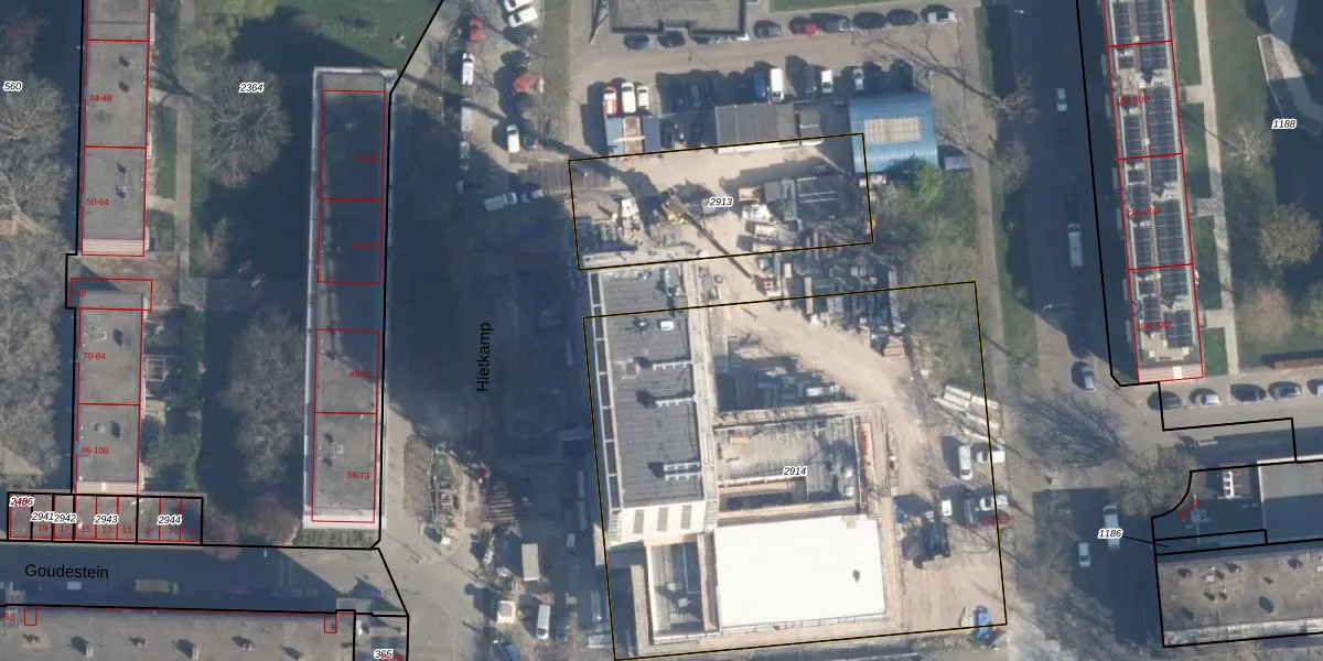 Het perceel waarop Hietkamp 166 staat heeft een oppervlakte van 3092 m². Dit is een zeer groot perceel. De perceeloppervlakte wordt geregistreerd door het Kadaster. Gedetailleerde informatie over de maten van dit perceel kunt u vinden in het rapport Kadastrale kaart met maatvoering van Hietkamp 166.