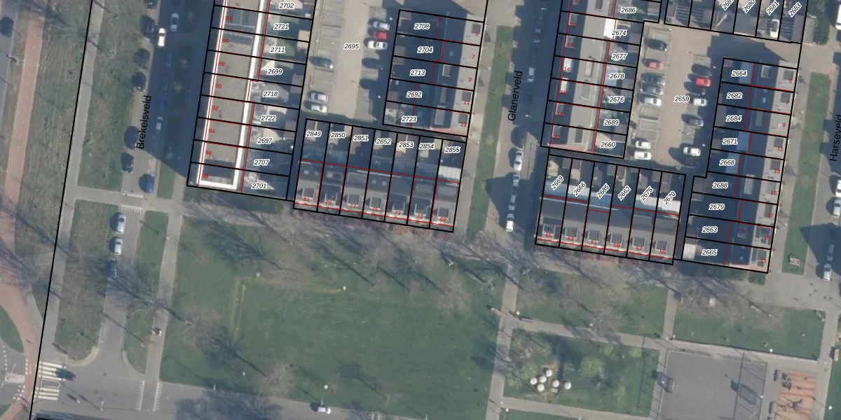 Gebruik de zoekbalk of klik op een perceel voor informatie over de adressen binnen dit perceel.