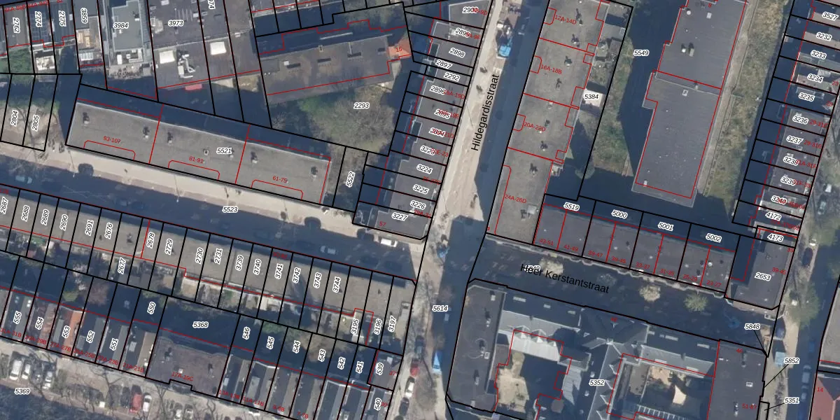 Het perceel waarop Hildegardisstraat 29-A staat heeft een oppervlakte van 77 m². Dit is een klein perceel. De perceeloppervlakte wordt geregistreerd door het Kadaster. Gedetailleerde informatie over de maten van dit perceel kunt u vinden in het rapport Kadastrale kaart met maatvoering van Hildegardisstraat 29-A.