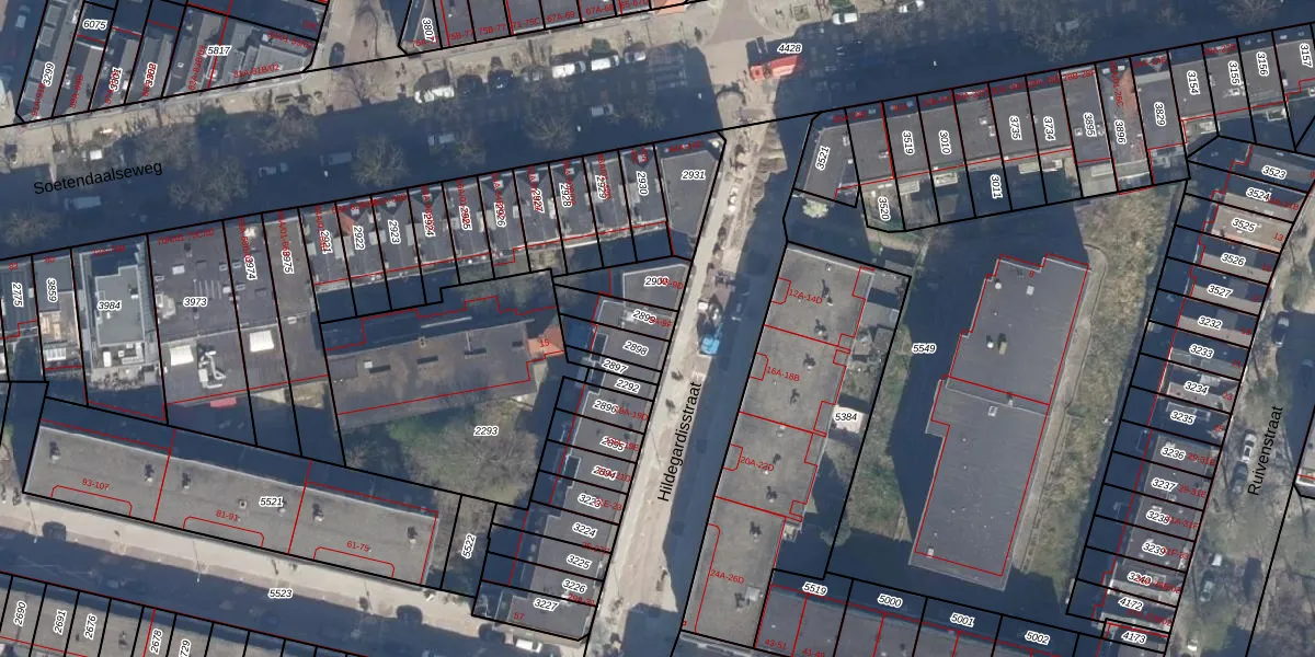 Het perceel waarop Hildegardisstraat 9-A staat heeft een oppervlakte van 84 m². Dit is een klein perceel. De perceeloppervlakte wordt geregistreerd door het Kadaster. Gedetailleerde informatie over de maten van dit perceel kunt u vinden in het rapport Kadastrale kaart met maatvoering van Hildegardisstraat 9-A.