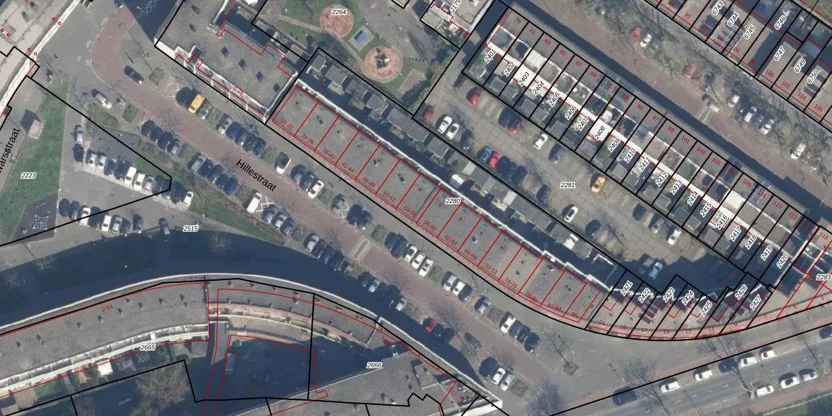 Hillestraat 54 is gelegen op kadastraal perceel RTD05P2280. Deze kadastrale aanduiding is uniek en wordt gebruikt door het Kadaster om eigendomsrechten en andere zakelijke rechten vast te leggen. Het perceel maakt onderdeel uit van de kadastrale gemeente Rotterdam.