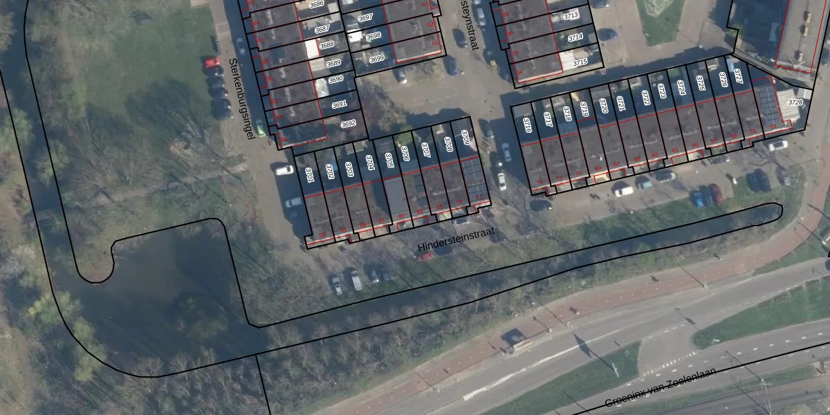 Gebruik de zoekbalk of klik op een perceel voor informatie over de adressen binnen dit perceel.