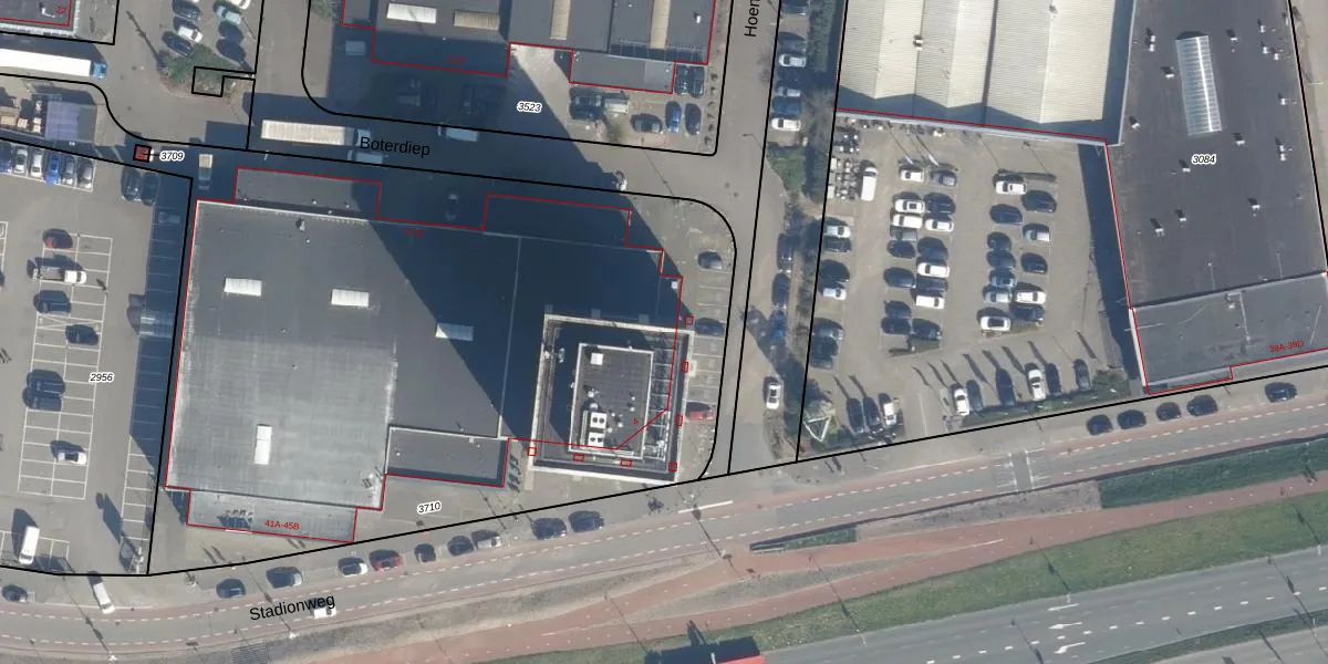 Het perceel waarop het adres ligt is RTD05-V-3710. De afkorting 'RTD05' staat voor kadastrale gemeente Rotterdam. De gemiddelde perceeloppervlakte in de kadastrale gemeente Rotterdam is 1401,79 m². Dit perceel is met zijn 4918 m² dus groter dan gemiddeld. De grootste perceeloppervlakte in de kadastrale gemeente is 36,8 ha. De kleinste oppervlakte bedraagt 0 m². Er zijn 18 adressen aanwezig op het perceel. In de Basisregistratie Kadaster (BRK) werden de grenzen van het perceel geregistreerd op 22-12-2003.