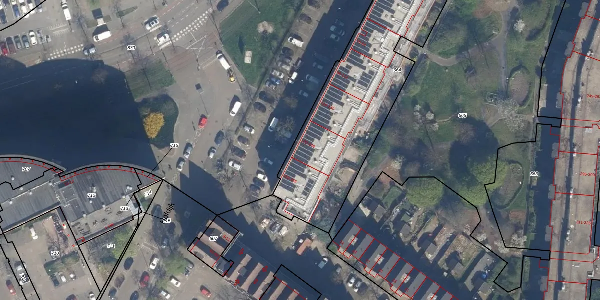 Het adres ligt op het perceel RTD08-AD-664, dat zich in de kadastrale gemeente Rotterdam bevindt. De oppervlakte van het perceel is 2982 m². Dat is groter dan gemiddeld in Rotterdam, waar de gemiddelde perceeloppervlakte op 689,2 m² ligt. Het kleinste perceel in de kadastrale gemeente is 0 m² groot. De grootste perceeloppervlakte is 4,0 ha. Er zijn 81 adressen aanwezig op het perceel. In de Basisregistratie Kadaster (BRK) werden de grenzen van het perceel geregistreerd op 10-07-2003.