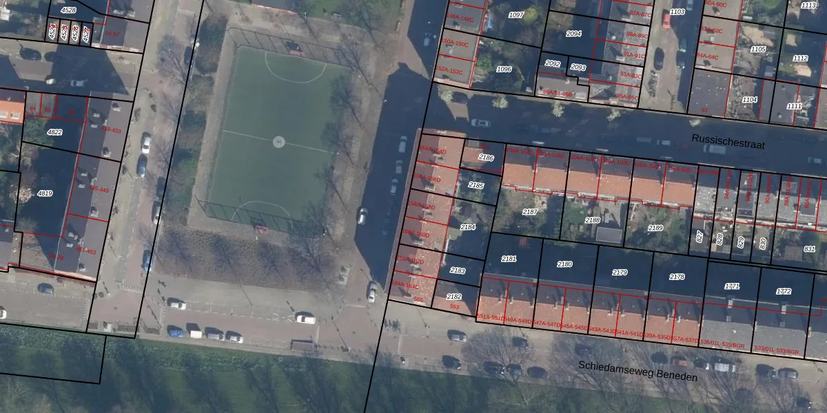 Het adres ligt op het perceel RTD10-AA-2184, dat zich in de kadastrale gemeente Rotterdam bevindt. Het perceel is kleiner dan gemiddeld in Rotterdam. Het perceel is 288 m² groot, terwijl het gemiddelde ligt op 1602,8 m². De grootste perceeloppervlakte in de kadastrale gemeente is 30,3 ha. De kleinste oppervlakte bedraagt 0 m². Er zijn 8 adressen aanwezig op het perceel. De huidige grenzen van het perceel zijn digitaal in de Basisregistratie Kadaster (BRK) geregistreerd op 20-07-2007.