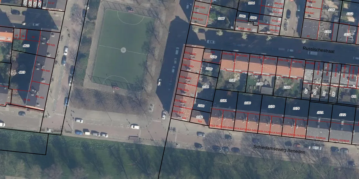 Het adres ligt op het perceel RTD10-AA-2184, dat zich in de kadastrale gemeente Rotterdam bevindt. Het perceel is kleiner dan gemiddeld in Rotterdam. Het perceel is 288 m² groot, terwijl het gemiddelde ligt op 1602,8 m². De grootste perceeloppervlakte in de kadastrale gemeente is 30,3 ha. De kleinste oppervlakte bedraagt 0 m². Er zijn 8 adressen aanwezig op het perceel. In de Basisregistratie Kadaster (BRK) werden de grenzen van het perceel geregistreerd op 20-07-2007.