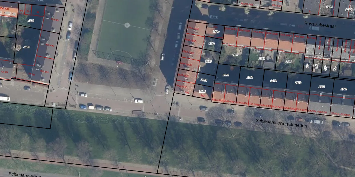 Het adres ligt op het perceel RTD10-AA-2183, dat zich in de kadastrale gemeente Rotterdam bevindt. Het perceel is kleiner dan gemiddeld in Rotterdam. Het perceel is 216 m² groot, terwijl het gemiddelde ligt op 1602,8 m². De grootste perceeloppervlakte in de kadastrale gemeente is 30,3 ha. De kleinste oppervlakte bedraagt 0 m². Op het perceel zijn 8 adressen aanwezig. De huidige grenzen van het perceel zijn digitaal in de Basisregistratie Kadaster (BRK) geregistreerd op 20-07-2007.