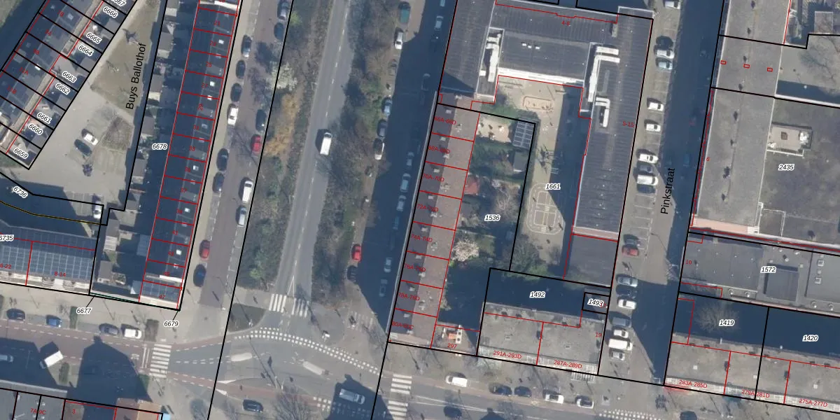 Het adres ligt op het perceel RTD10-AA-1536, dat zich in de kadastrale gemeente Rotterdam bevindt. Het perceel is kleiner dan gemiddeld in Rotterdam. Het perceel is 1329 m² groot, terwijl het gemiddelde ligt op 1602,8 m². Het kleinste perceel in de kadastrale gemeente is 0 m² groot. De grootste perceeloppervlakte is 30,3 ha. Op het perceel liggen in totaal 32 adressen. De huidige grenzen van het perceel zijn digitaal in de Basisregistratie Kadaster (BRK) geregistreerd op 27-01-2003.