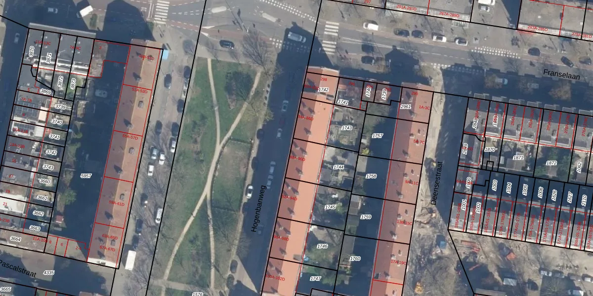 Hogenbanweg 88-B is gelegen op kadastraal perceel RTD10AA1744. Deze kadastrale aanduiding is uniek en wordt gebruikt door het Kadaster om eigendomsrechten en andere zakelijke rechten vast te leggen. Het perceel maakt onderdeel uit van de kadastrale gemeente Rotterdam.