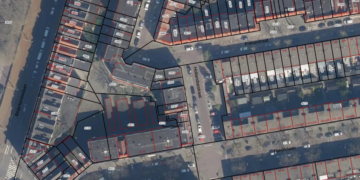 Het adres ligt op het perceel RTD05-V-4922, dat zich in de kadastrale gemeente Rotterdam bevindt. Het perceel is kleiner dan gemiddeld in Rotterdam. Het perceel is 987 m² groot, terwijl het gemiddelde ligt op 1401,79 m². Het kleinste perceel in de kadastrale gemeente is 0 m² groot. De grootste perceeloppervlakte is 36,8 ha. Op het perceel liggen in totaal 20 adressen. In de Basisregistratie Kadaster (BRK) werden de grenzen van het perceel geregistreerd op 04-12-2014.