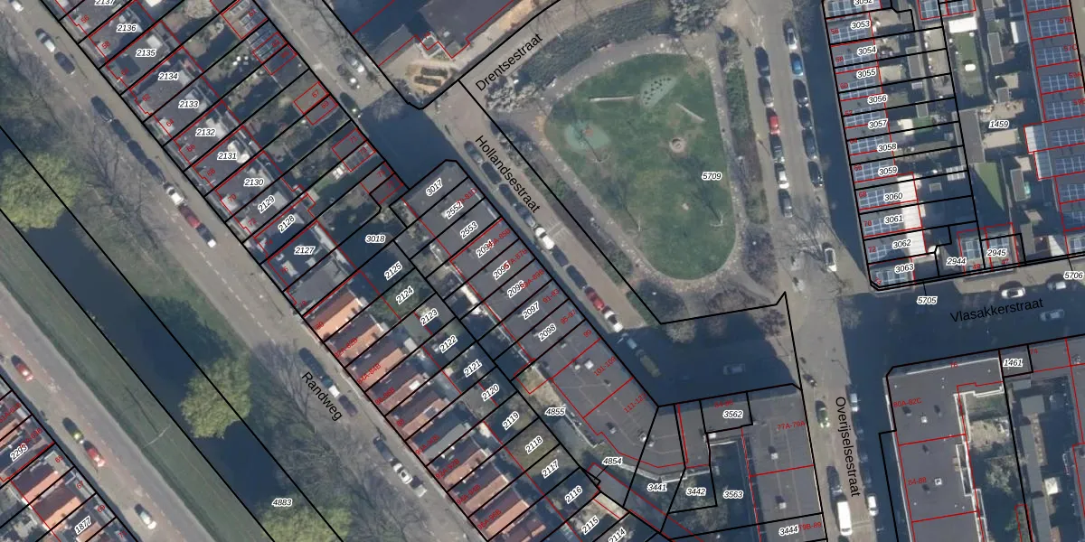 Het perceel waarop Hollandsestraat 89-B staat heeft een oppervlakte van 87 m². Dit is een klein perceel. De perceeloppervlakte wordt geregistreerd door het Kadaster. Gedetailleerde informatie over de maten van dit perceel kunt u vinden in het rapport Kadastrale kaart met maatvoering van Hollandsestraat 89-B.