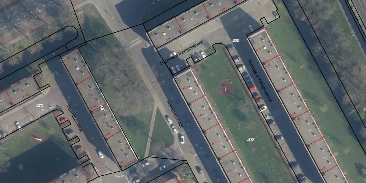 Het perceel waarop Homerusstraat 10 staat heeft een oppervlakte van 7192 m². Dit is een zeer groot perceel. De perceeloppervlakte wordt geregistreerd door het Kadaster. Gedetailleerde informatie over de maten van dit perceel kunt u vinden in het rapport Kadastrale kaart met maatvoering van Homerusstraat 10.