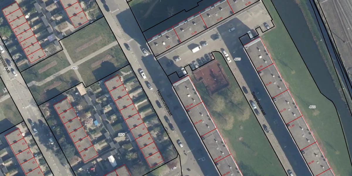 Het perceel waarop Homerusstraat 126 staat heeft een oppervlakte van 7525 m². Dit is een zeer groot perceel. De perceeloppervlakte wordt geregistreerd door het Kadaster. Gedetailleerde informatie over de maten van dit perceel kunt u vinden in het rapport Kadastrale kaart met maatvoering van Homerusstraat 126.