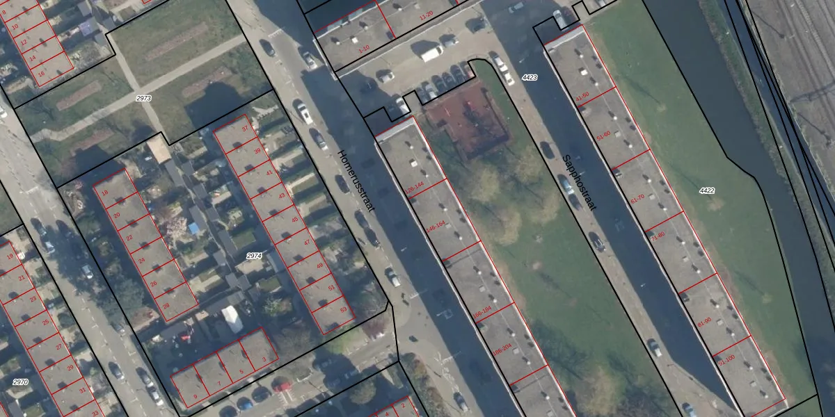 Het perceel waarop Homerusstraat 146 staat heeft een oppervlakte van 7525 m². Dit is een zeer groot perceel. De perceeloppervlakte wordt geregistreerd door het Kadaster. Gedetailleerde informatie over de maten van dit perceel kunt u vinden in het rapport Kadastrale kaart met maatvoering van Homerusstraat 146.