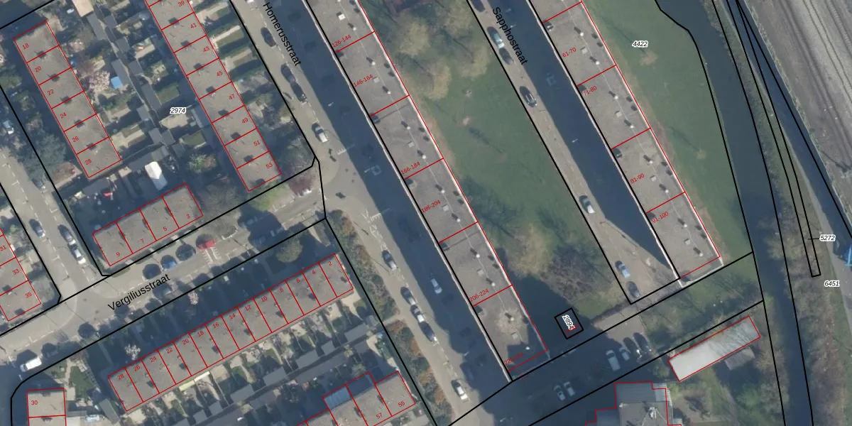 Het perceel waarop Homerusstraat 188 staat heeft een oppervlakte van 7525 m². Dit is een zeer groot perceel. De perceeloppervlakte wordt geregistreerd door het Kadaster. Gedetailleerde informatie over de maten van dit perceel kunt u vinden in het rapport Kadastrale kaart met maatvoering van Homerusstraat 188.
