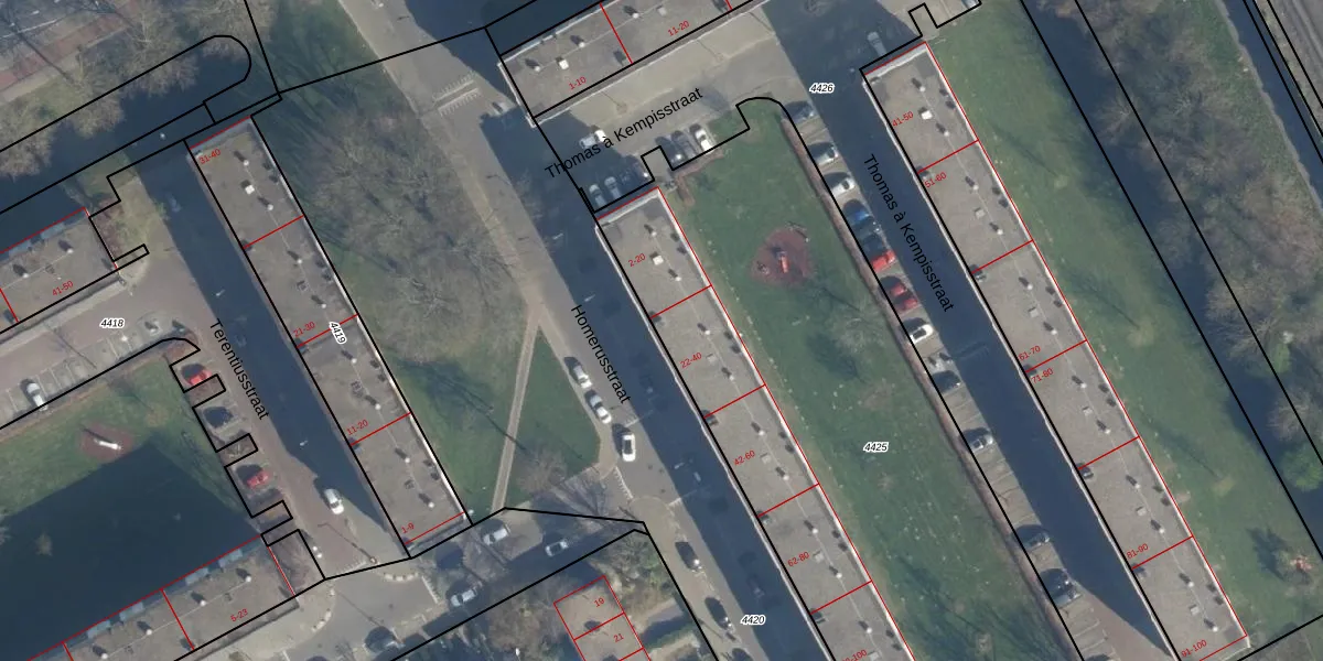 Het perceel waarop Homerusstraat 22 staat heeft een oppervlakte van 7192 m². Dit is een zeer groot perceel. De perceeloppervlakte wordt geregistreerd door het Kadaster. Gedetailleerde informatie over de maten van dit perceel kunt u vinden in het rapport Kadastrale kaart met maatvoering van Homerusstraat 22.