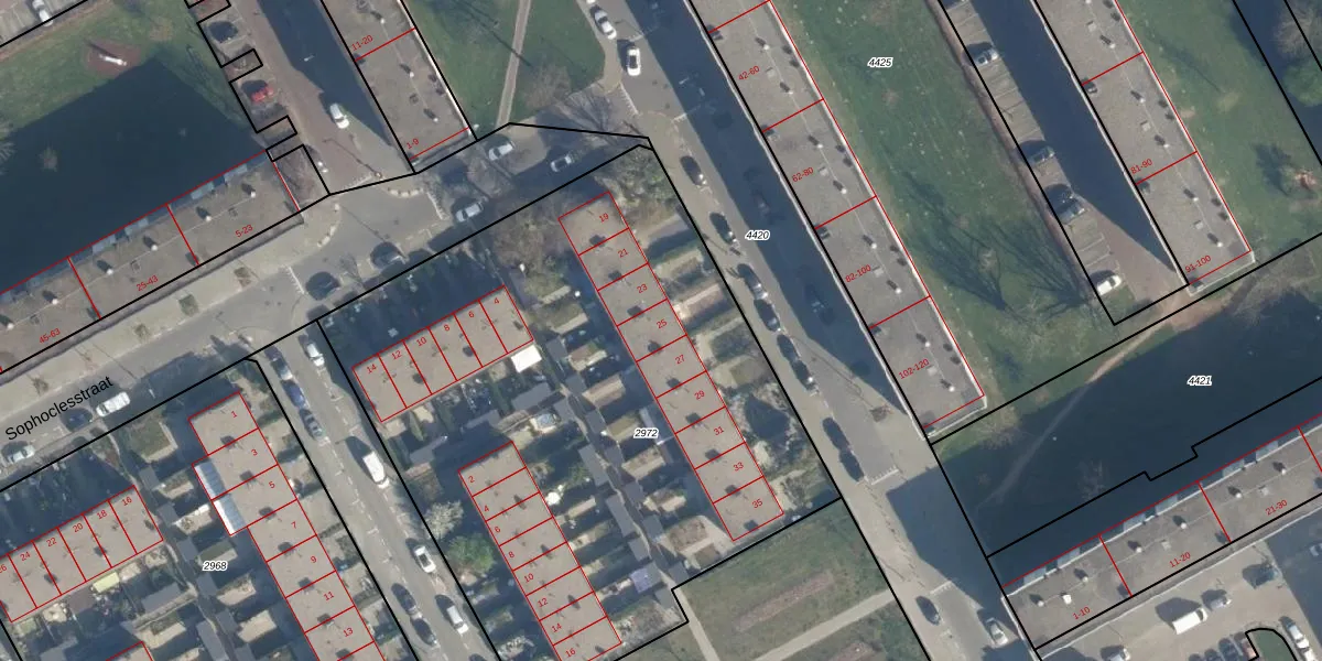 Het perceel waarop Homerusstraat 25 staat heeft een oppervlakte van 3677 m². Dit is een zeer groot perceel. De perceeloppervlakte wordt geregistreerd door het Kadaster. Gedetailleerde informatie over de maten van dit perceel kunt u vinden in het rapport Kadastrale kaart met maatvoering van Homerusstraat 25.