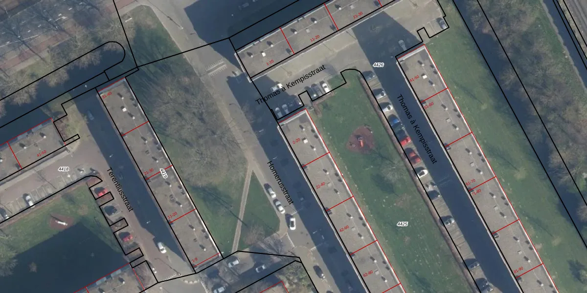 Het perceel waarop Homerusstraat 4 staat heeft een oppervlakte van 7192 m². Dit is een zeer groot perceel. De perceeloppervlakte wordt geregistreerd door het Kadaster. Gedetailleerde informatie over de maten van dit perceel kunt u vinden in het rapport Kadastrale kaart met maatvoering van Homerusstraat 4.