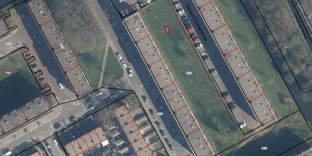 Homerusstraat 46 is gelegen op kadastraal perceel ISM01C4425. Deze kadastrale aanduiding is uniek en wordt gebruikt door het Kadaster om eigendomsrechten en andere zakelijke rechten vast te leggen. Het perceel maakt onderdeel uit van de kadastrale gemeente IJsselmonde.