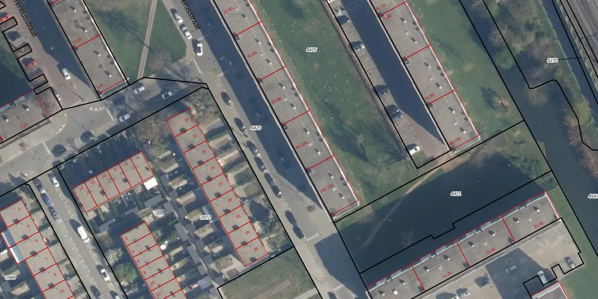 Het adres ligt op het perceel ISM01-C-4425, dat zich in de kadastrale gemeente IJsselmonde bevindt. Het perceel is met 7192 m² relatief groot. Het gemiddelde ligt in de kadastrale gemeente IJsselmonde op 871,92 m². De grootste perceeloppervlakte in de kadastrale gemeente is 46,2 ha. De kleinste oppervlakte bedraagt 0 m². Op het perceel liggen in totaal 160 adressen. De laatste wijziging in het de Basisregistratie Kadaster (BRK) was op 01-09-2004.