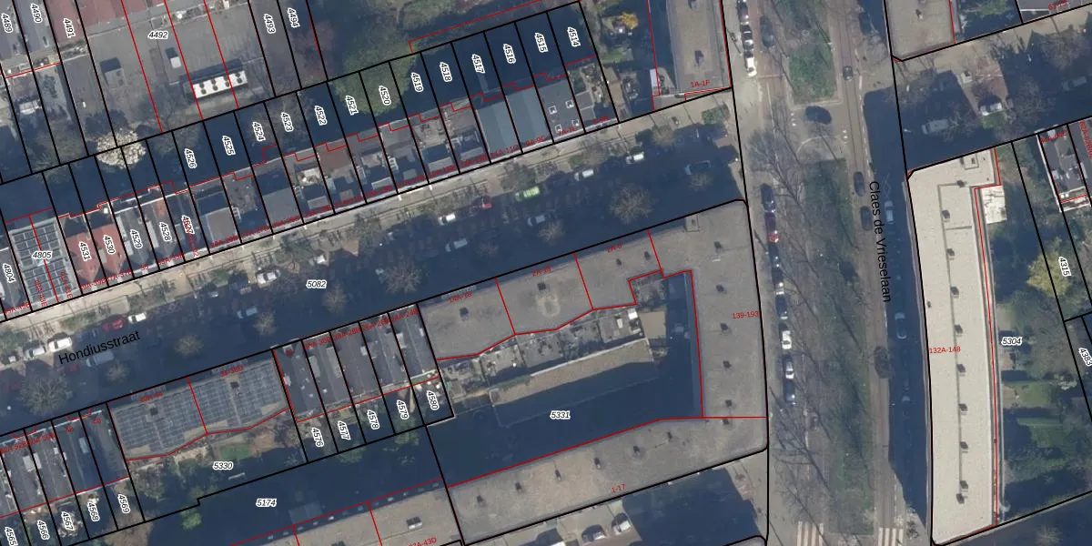 Het perceel waarop Hondiusstraat 10-C staat heeft een oppervlakte van 2759 m². Dit is een zeer groot perceel. De perceeloppervlakte wordt geregistreerd door het Kadaster. Gedetailleerde informatie over de maten van dit perceel kunt u vinden in het rapport Kadastrale kaart met maatvoering van Hondiusstraat 10-C.
