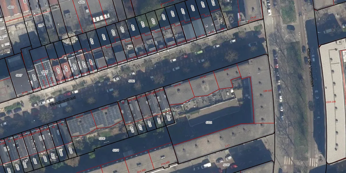 Het perceel waarop Hondiusstraat 18 staat heeft een oppervlakte van 2759 m². Dit is een zeer groot perceel. De perceeloppervlakte wordt geregistreerd door het Kadaster. Gedetailleerde informatie over de maten van dit perceel kunt u vinden in het rapport Kadastrale kaart met maatvoering van Hondiusstraat 18.